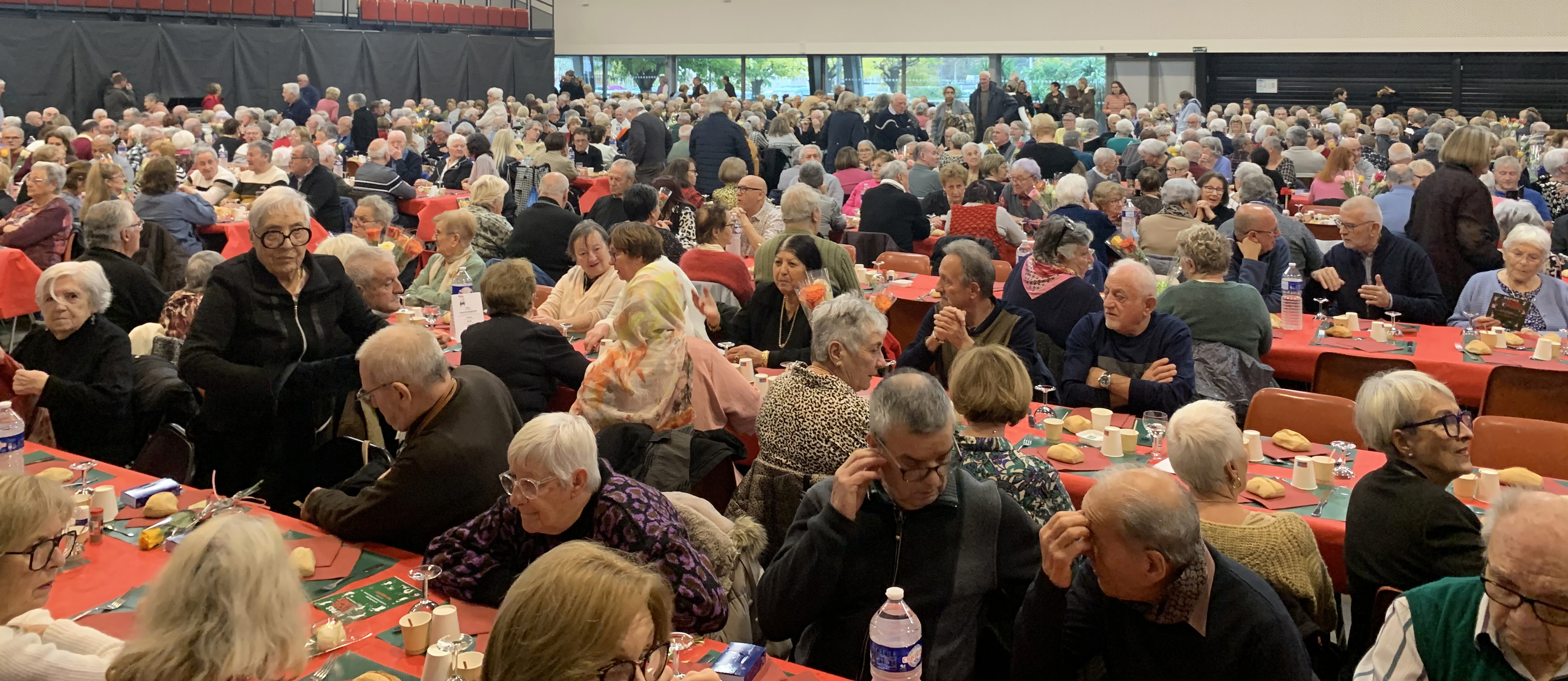 Ce mercredi 3 décembre, le CCAS (Centre Communal d'Action Sociale) et la Ville de Sorgues ont donné rendez-vous à nos aînés pour le traditionnel repas de Noël, organisé à la salle des fêtes. Ce moment si attendu a réuni 844 convives, un chiffre en hausse qui témoigne de l’attachement profond des seniors à ce rendez-vous chaleureux et festif.