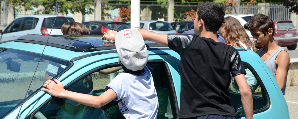 L'été à l'AMdJ rime avec sport, culture, sorties et fous rires ! Pour financer une partie de leurs activités, et surtout sensibiliser les jeunes à la valeur de l'argent, l'équipe encadrante de l'AMdJ a organisé un lavage auto le lundi 18 juillet sur le parking de la piscine : un lavage écologique, sans usage excessif d'eau. Et la bonne humeur était au rendez-vous ! Les voitures ont défilé toute l'après-midi et sont ressorties éclatantes.