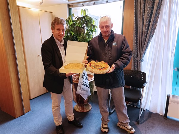 Ce lundi 19 janvier, Frédéric Portigliatti, propriétaire de la boulangerie-pâtisserie éponyme, s’est rendu au centre administratif afin d’offrir au Maire, comme le veut la tradition depuis plus de 40 ans, un gâteau ainsi qu’une galette des rois.