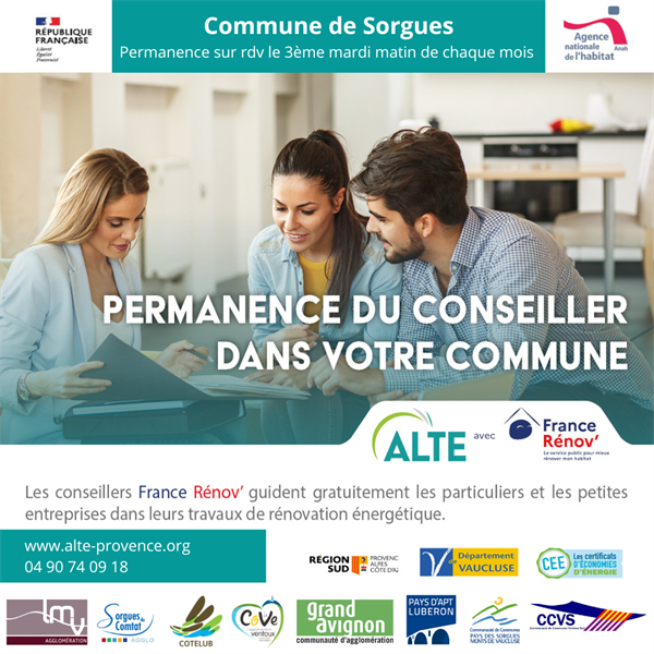 À Sorgues, une permanence est organisée tous les 3èmes mardis du mois, dans la Salle du Château Gentilly, de 9h à 12h.